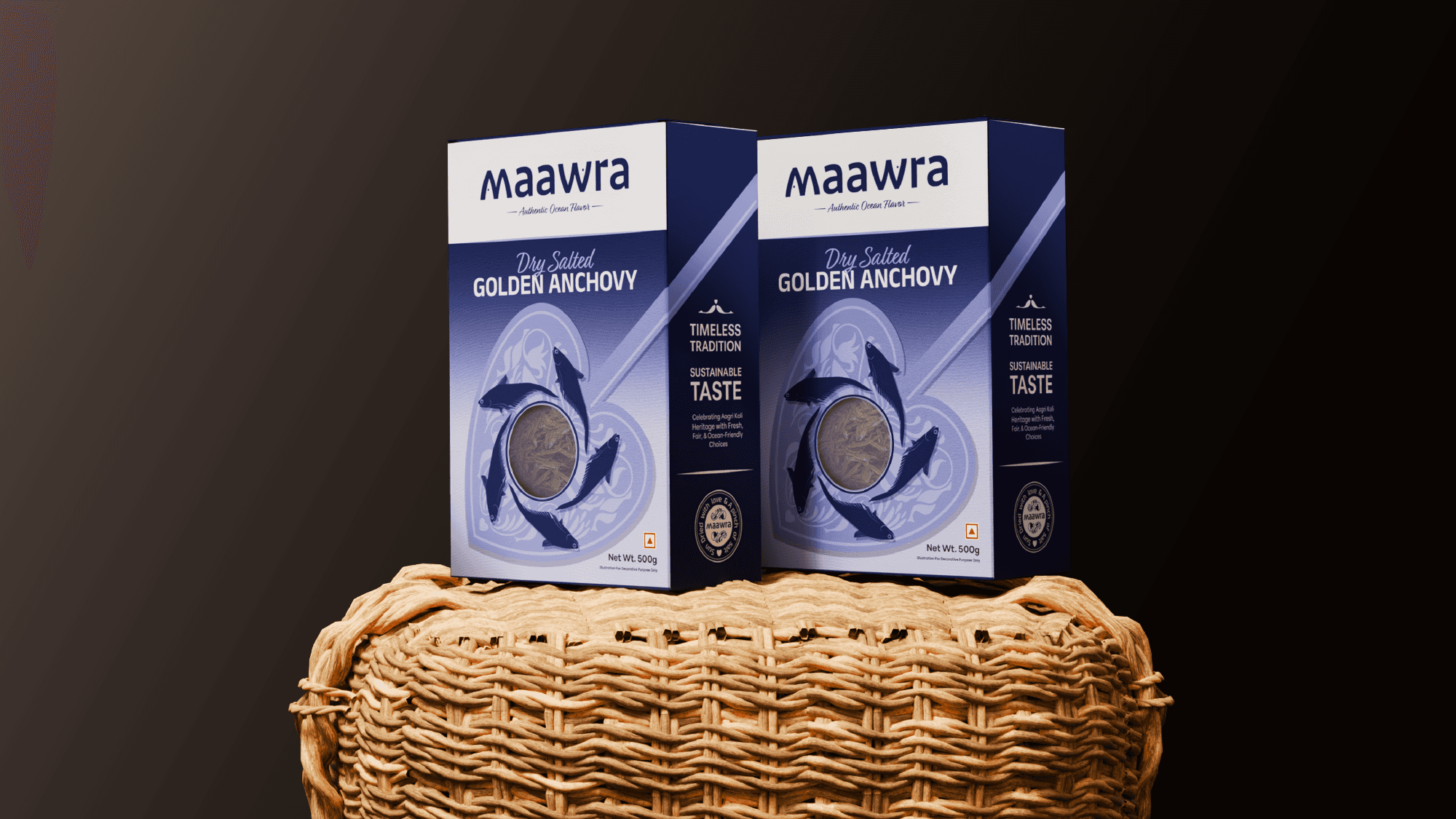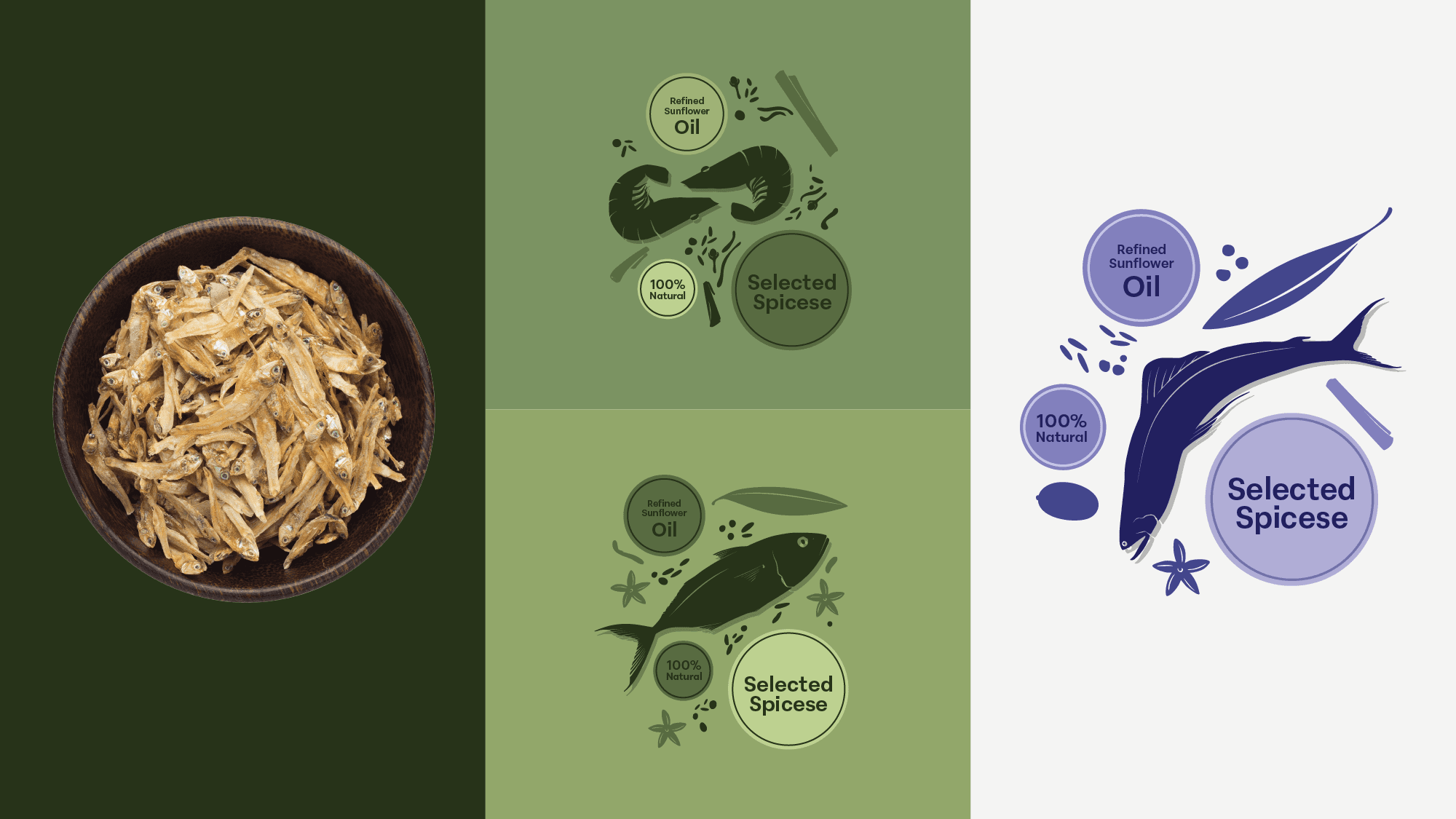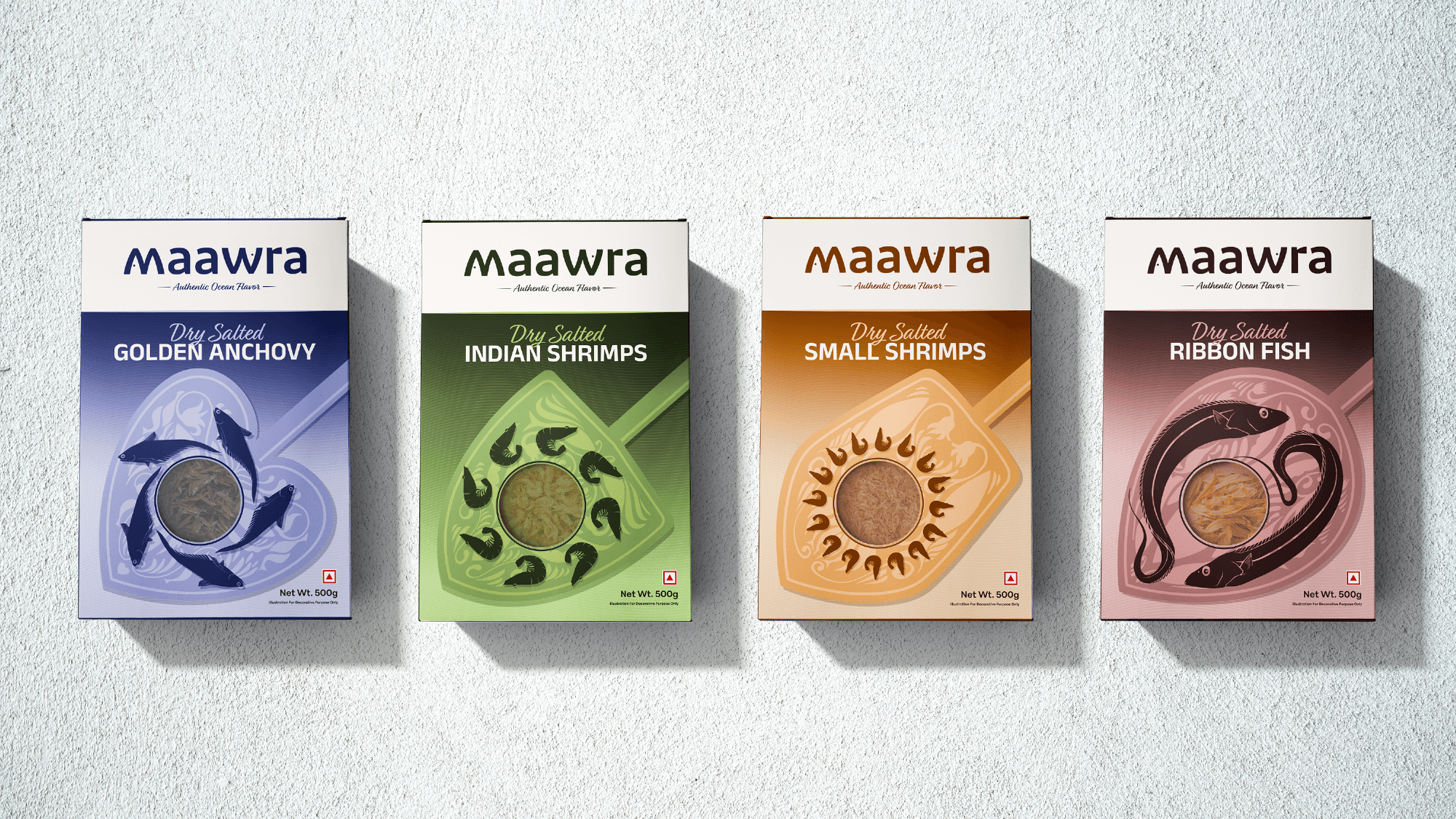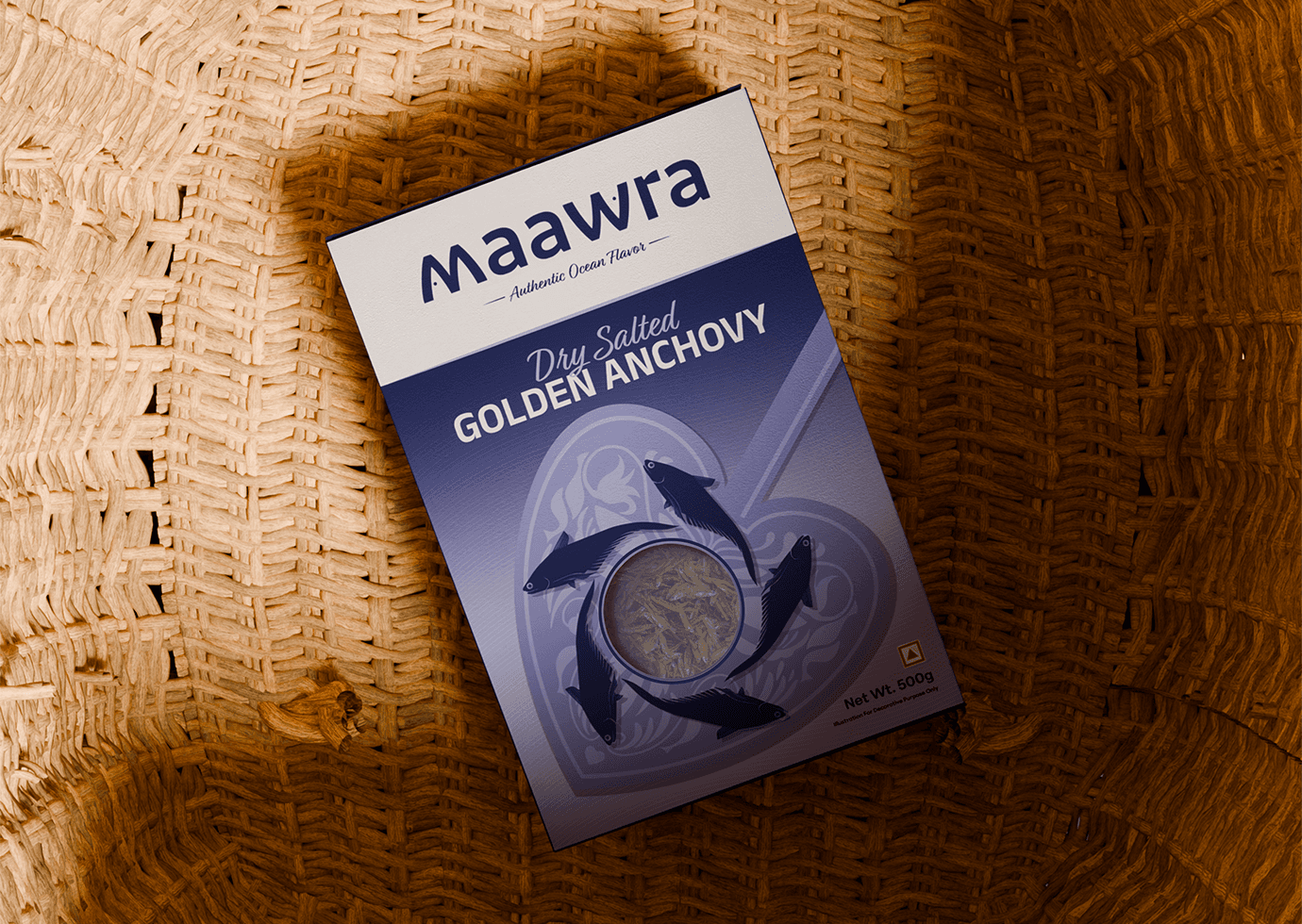 One of the key challenges in designing the visual identity for this dry fish brand was the inherent appearance of the product itself. Dry fish, by nature, lacks visual appeal and does not resemble its fresh counterpart, making it difficult for new or unfamiliar consumers to recognize or relate to it. Using direct imagery of dry fish could feel uninviting, especially for those trying it for the first time. Additionally, many consumers may not be familiar with the specific type of fish once dried, leading to confusion when identifying the product through photographs alone.