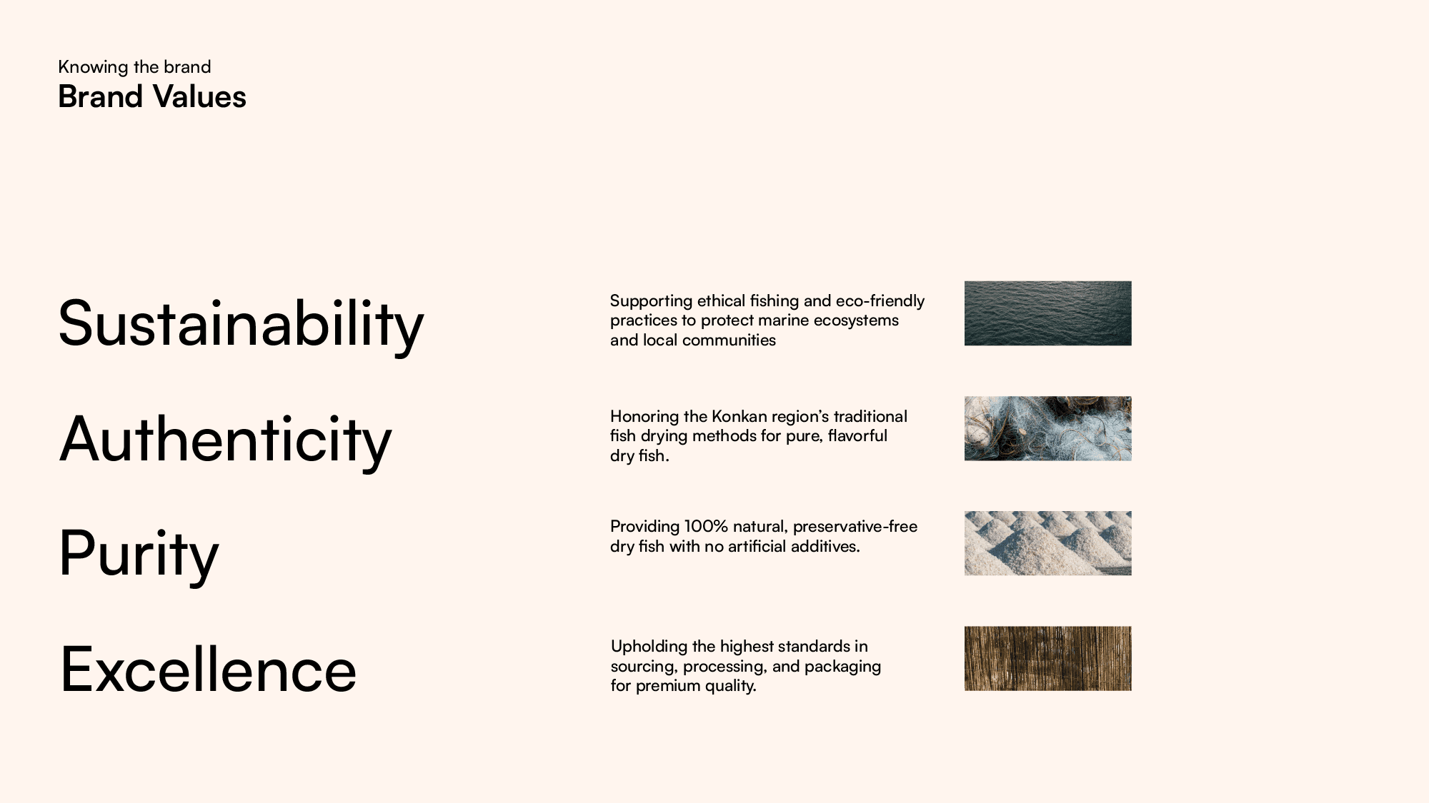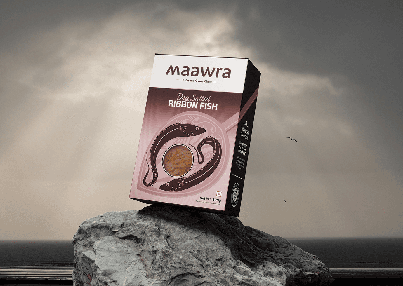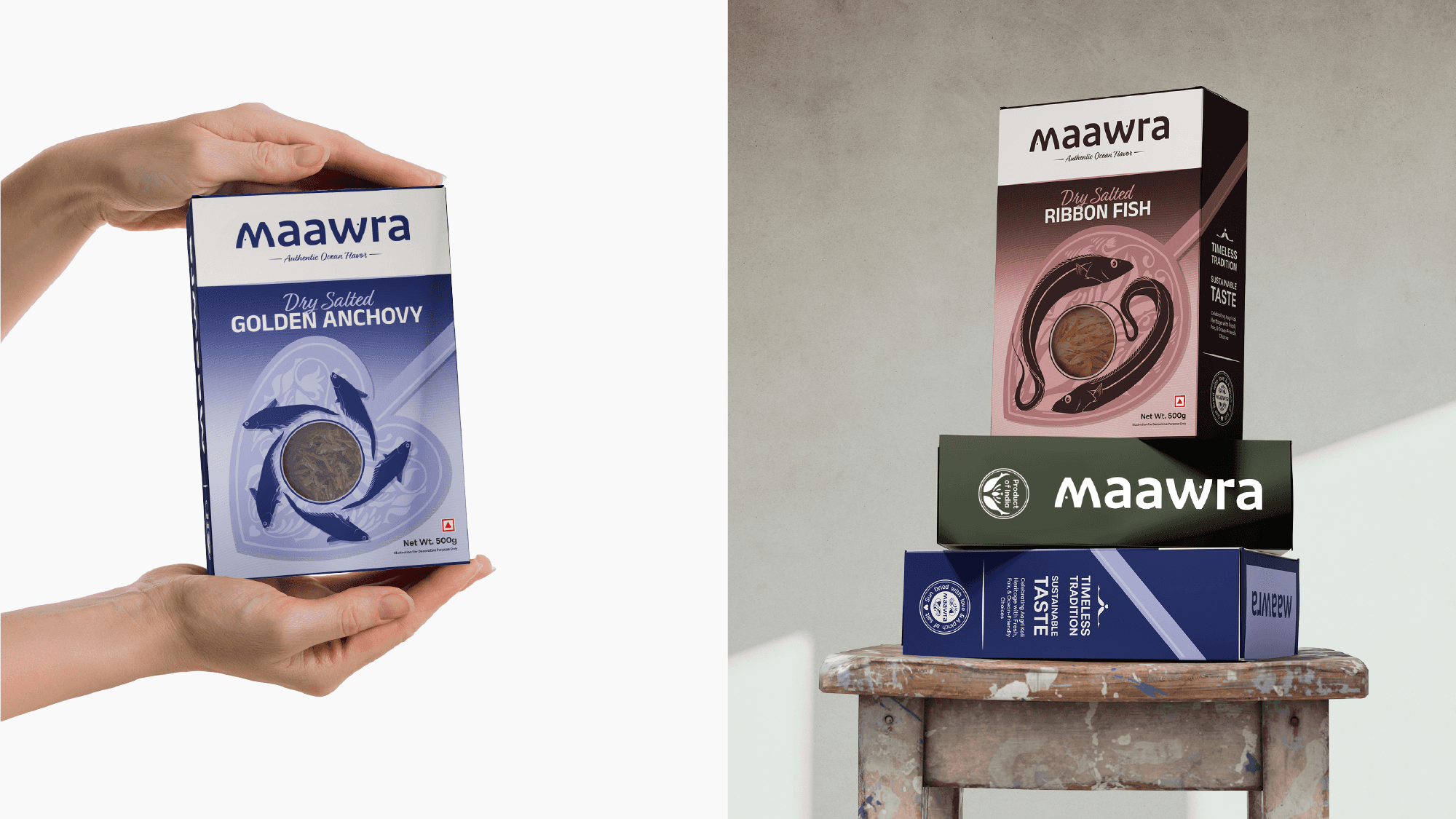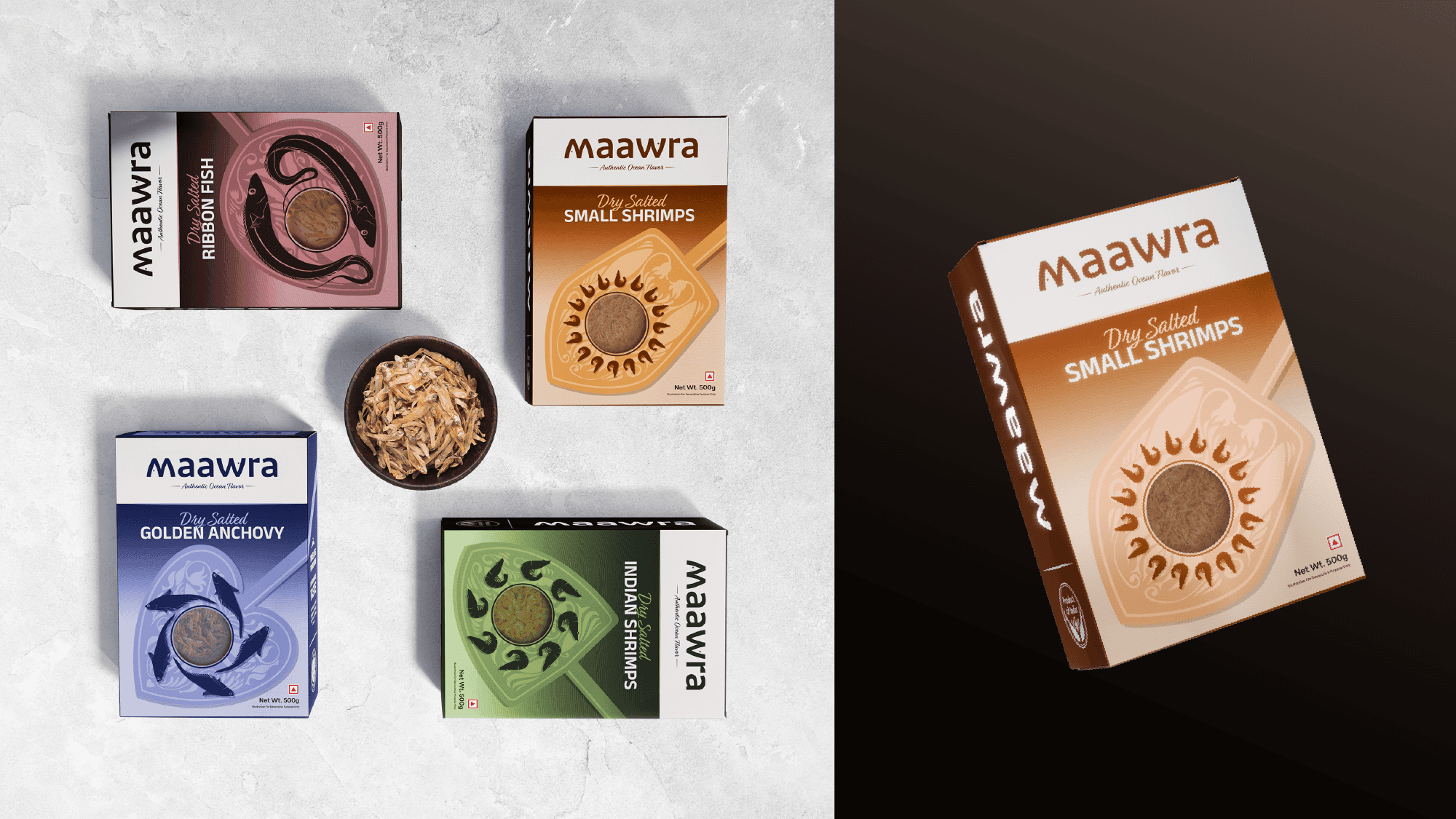 One of the key challenges in designing the visual identity for this dry fish brand was the inherent appearance of the product itself. Dry fish, by nature, lacks visual appeal and does not resemble its fresh counterpart, making it difficult for new or unfamiliar consumers to recognize or relate to it. Using direct imagery of dry fish could feel uninviting, especially for those trying it for the first time. Additionally, many consumers may not be familiar with the specific type of fish once dried, leading to confusion when identifying the product through photographs alone.