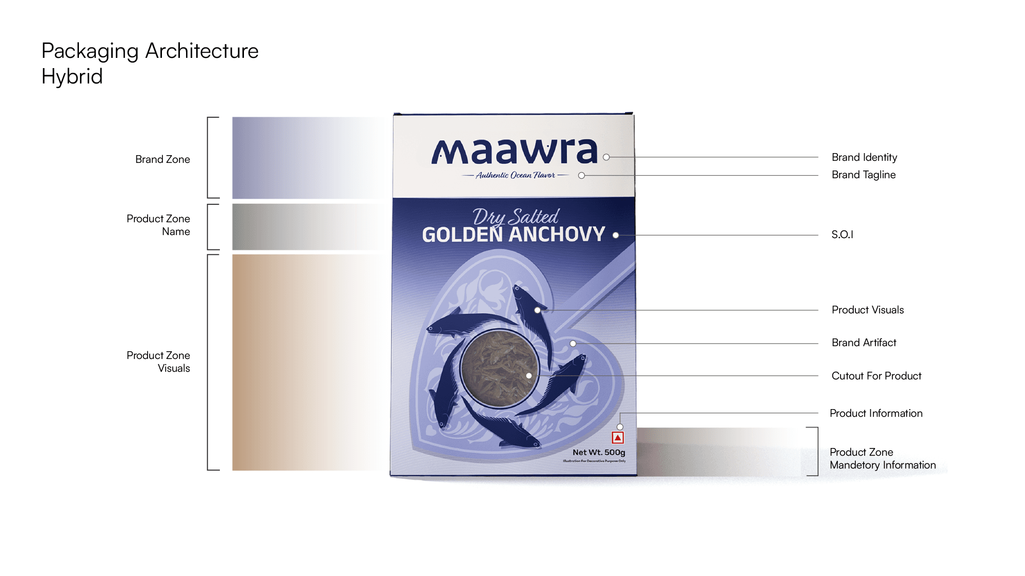 To address these challenges, I opted for a stencil-style illustration paired with a see-through window on the packaging. This approach strikes a balance between artistic representation and product visibility. The illustration provides a clean, visually appealing depiction of the fish while the transparent window ensures authenticity, allowing consumers to see the product without overwhelming them with unfamiliar imagery.