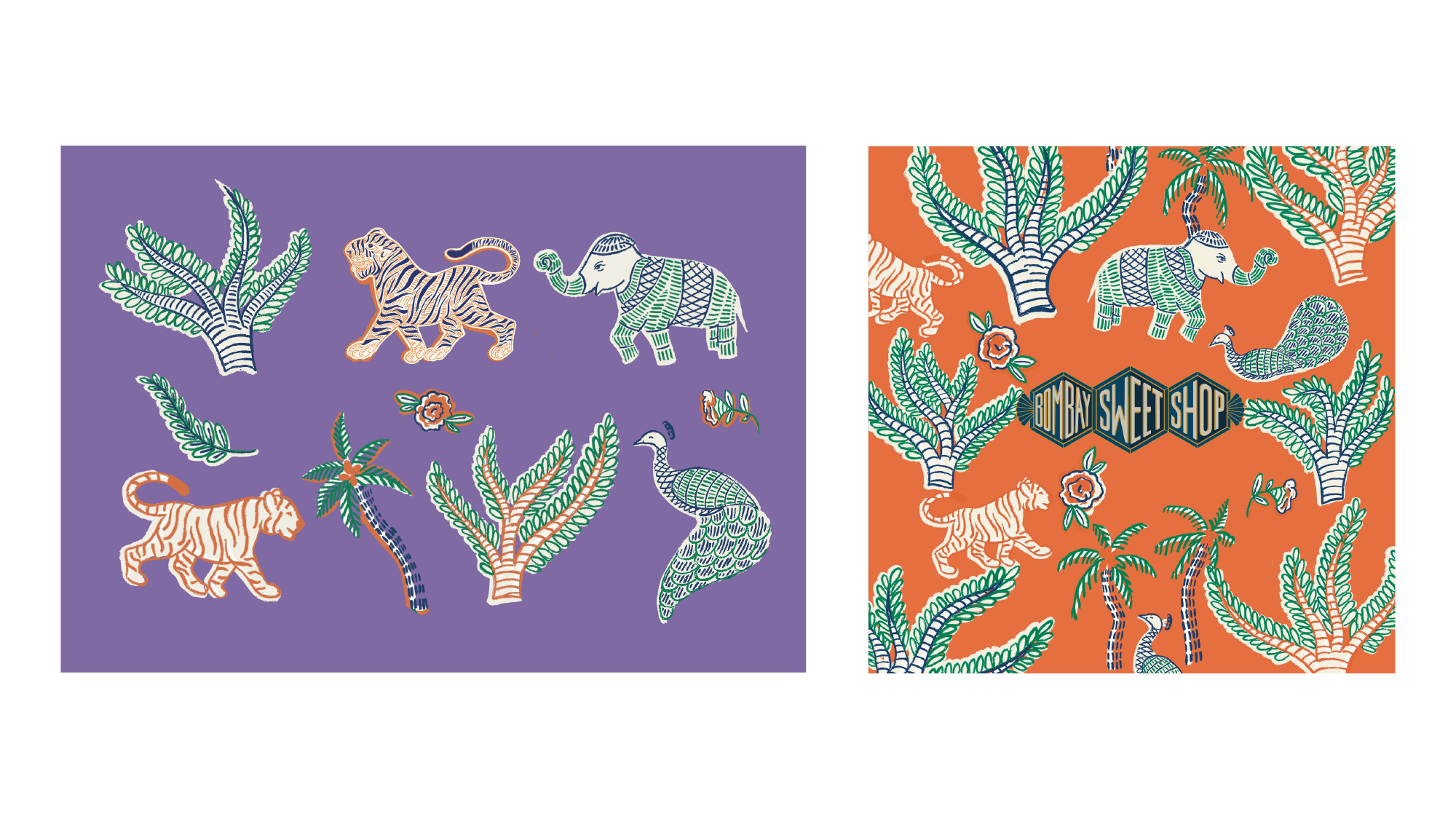 Bombay Sweet Shop has an iconic Rani Bagh sweet box, for which they create custom sleeves for different festivals. For the Independence Day packaging, we explored various iterations before finalizing a design. The client’s brief was to incorporate artistic motifs with the tricolor in a subtle yet impactful way to reflect the spirit of Independence Day.